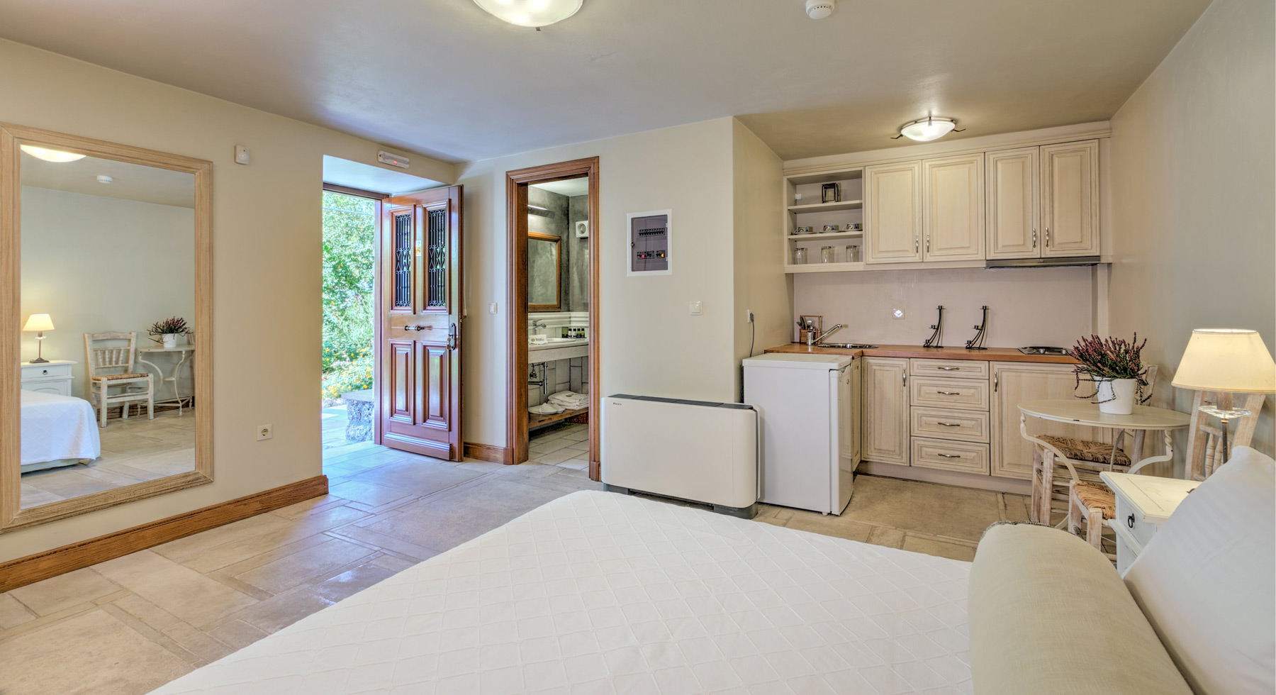 Διαθέτει δική του εξωτερική αυλή με κήπο, king-size κρεβάτι Cocomat, μαρμάρινο μπάνιο με ξύλινες λεπτομέρειες, κουζινέτα με καφετιέρα.Θα έχετε την ευκαιρία να διαμείνετε στο παλιό κελάρι του αρχοντικού,το οποίο χαρακτηρίζεται από δροσιά και amenities!